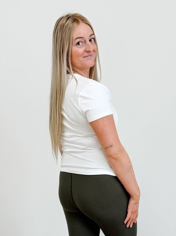 Effortlessly chic and ready for anything, the Drift Fitted Hip Short Sleeve Top hugs you in all the right places with its flattering silhouette. The fitted design skims your curves while the hip-length cut keeps things fun and flirty. Perfect for layering or wearing solo, this versatile tee transitions seamlessly from casual coffee runs to weekend adventures. Soft, comfortable, and endlessly stylish—your new go-to piece awaits.