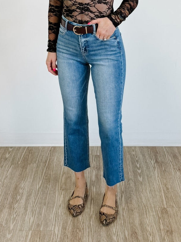 These high-rise crop jeans are your new secret weapon for looking effortlessly put-together. The built-in tummy control smooths and flatters your silhouette, while the straight-leg cut offers timeless versatility that works with everything in your closet. Perfect for pairing with crop tops, oversized sweaters, or tucked-in blouses, these jeans deliver comfort without compromising on style. Slip them on and feel confident all day long.