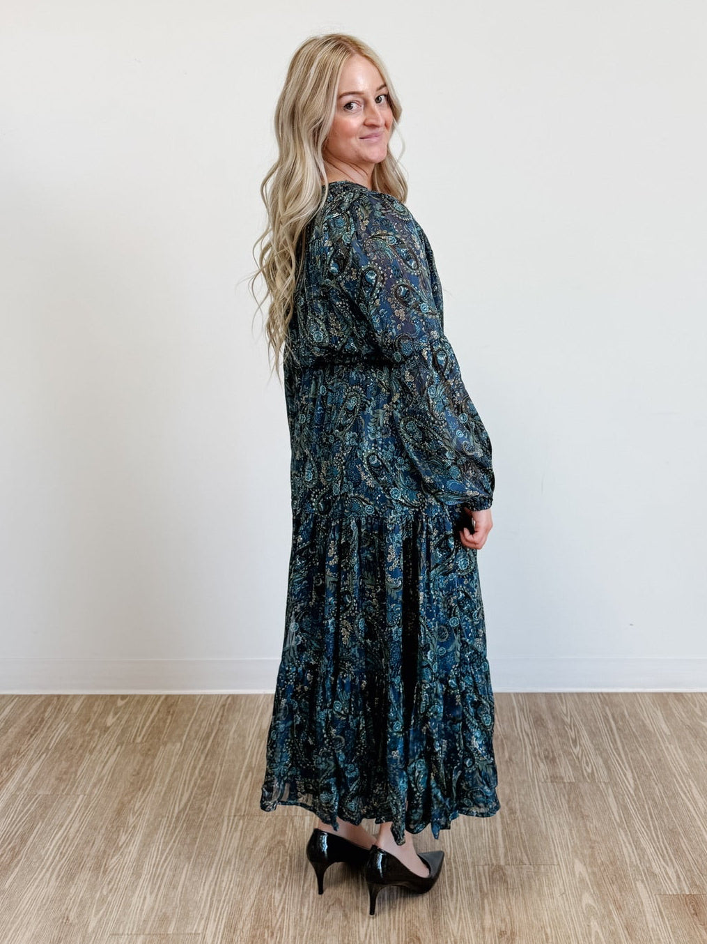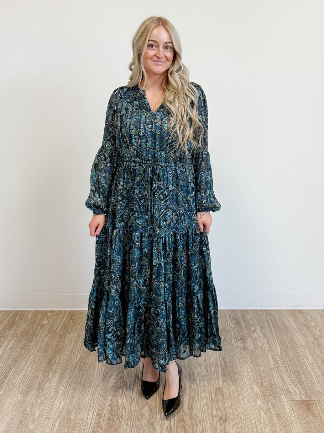 Step into a world of shimmer and flow with the Painterly Lurex Paisley Midaxi Dress. Its delicate paisley print dances alongside subtle lurex threads, adding just the right amount of sparkle to your day. The midaxi length offers a playful twist on classic elegance, perfect for twirling through sunny afternoons or sparkling at evening gatherings. Light, lively, and effortlessly charming, this dress invites you to embrace every moment with style and a little extra shine.