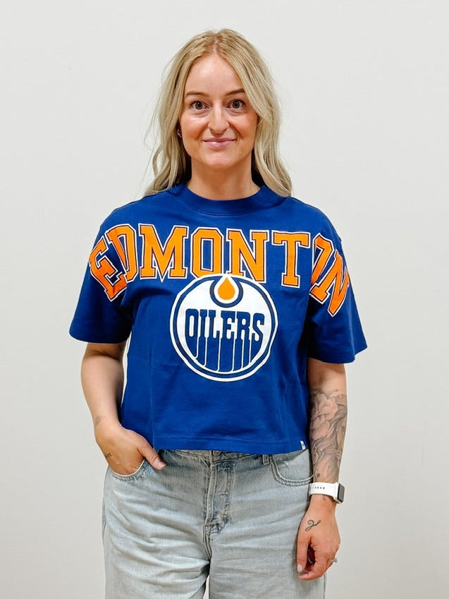 Score big with this playful Oilers Outreach '47 City Tee, designed for fans who wear their team pride loud and proud. Featuring classic '47 brand quality and a fresh city-inspired design, this tee celebrates your love for the Oilers in style. Perfect for game days, casual outings, or showing support year-round. Comfortable, durable, and unmistakably Edmonton—because being a fan is a lifestyle.
