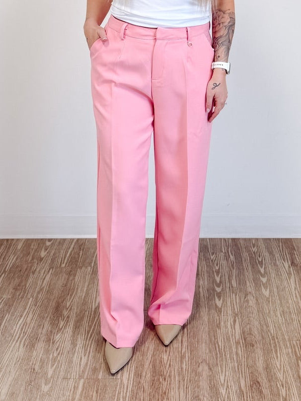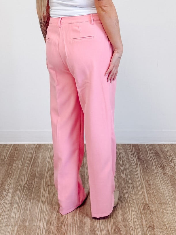 Tailored Straight Leg Crepe Pant in Blush Pink