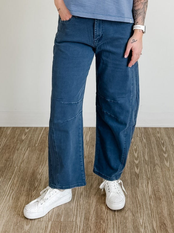 Barrel Leg Denim Pants Get ready to turn heads with these fun and flirty barrel leg denim pants! The relaxed, rounded silhouette creates an effortlessly cool vibe that works for casual hangouts or dressed-up nights out. Crafted from classic denim, they're durable enough for everyday wear while the trendy barrel cut keeps your look fresh and fashion-forward. Perfect for pairing with sneakers, boots, or your favorite heels—these pants are your new go-to for making a statement.