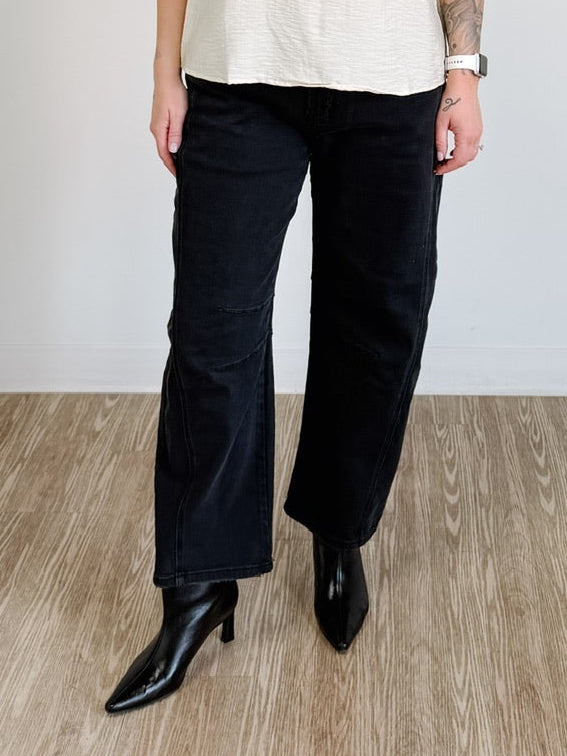 Barrel Leg Denim Pants in Black