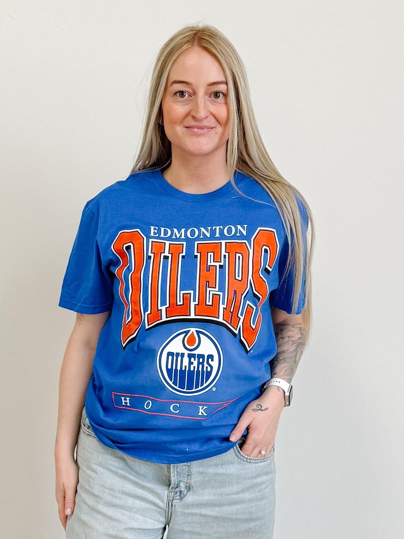 Show off your Oilers pride in style with the Edmonton Oilers Hot Corner '47 Tee. This comfy tee features a playful nod to the game’s hottest spot, making it perfect for fans who love some fun with their hockey. Soft fabric and a relaxed fit keep you comfortable whether you’re cheering from the stands or hanging out with friends. Score a style goal with this must-have fan favorite!