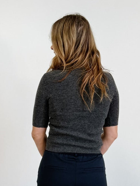 Marina 1/2 Sleeve Poloneck Pullover in Dark Grey