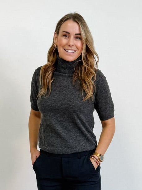 Marina 1/2 Sleeve Rollneck Pullover in Dark Grey