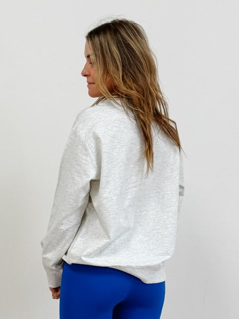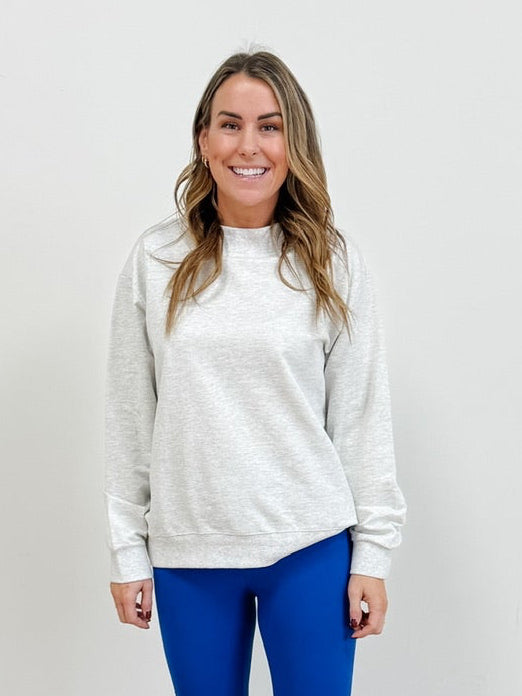 Mock Neck Terry Sweatshirt With Oversized Neck Band in Heather Grey