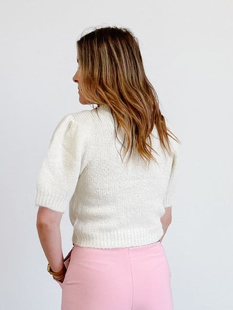 Add a touch of whimsy to your wardrobe with the Novah O-Neck Puff Short Sleeve Pullover in Birch. Its charming puff sleeves and soft, breathable fabric make it perfect for sunny days and casual outings. Light and breezy, this pullover brings effortless style with a playful twist.